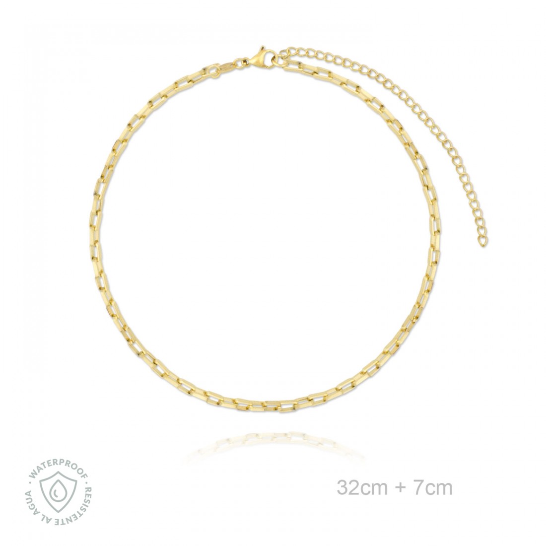 Longitud de 32 cm más cadena de alargamiento de 7 cm.