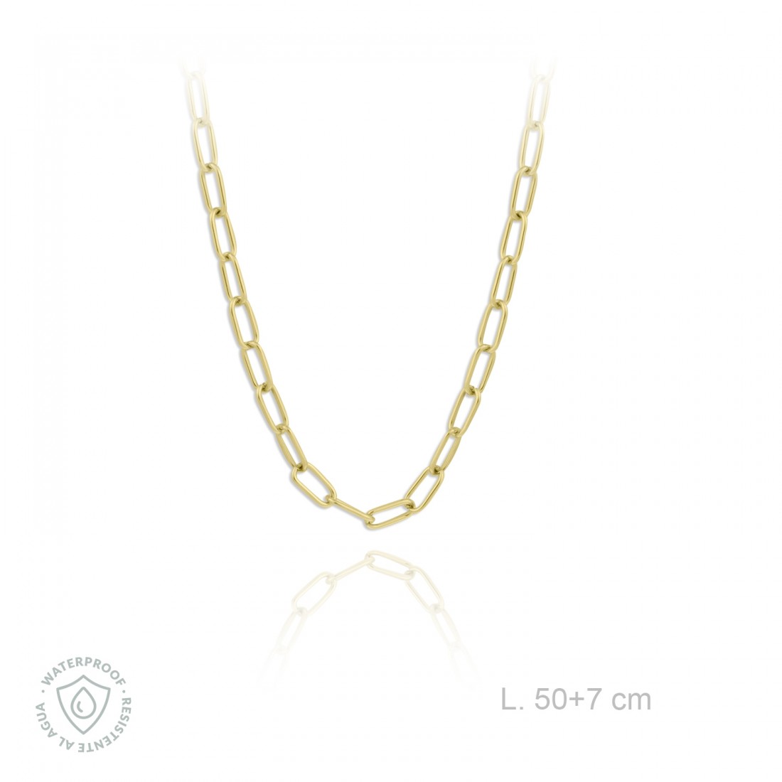 Longitud de 50 cm más cadena de alargamiento de 7 cm.