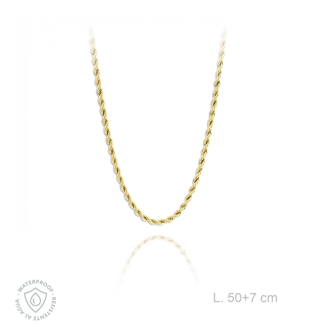 Longitud de 50 cm más cadena de alargamiento de 7 cm.