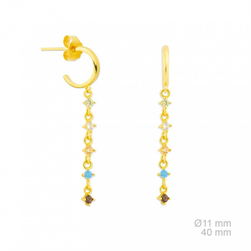 Aros de Plata de Ley chapados en oro 11 mm de diámetro con circonitas de color de 2 mm.