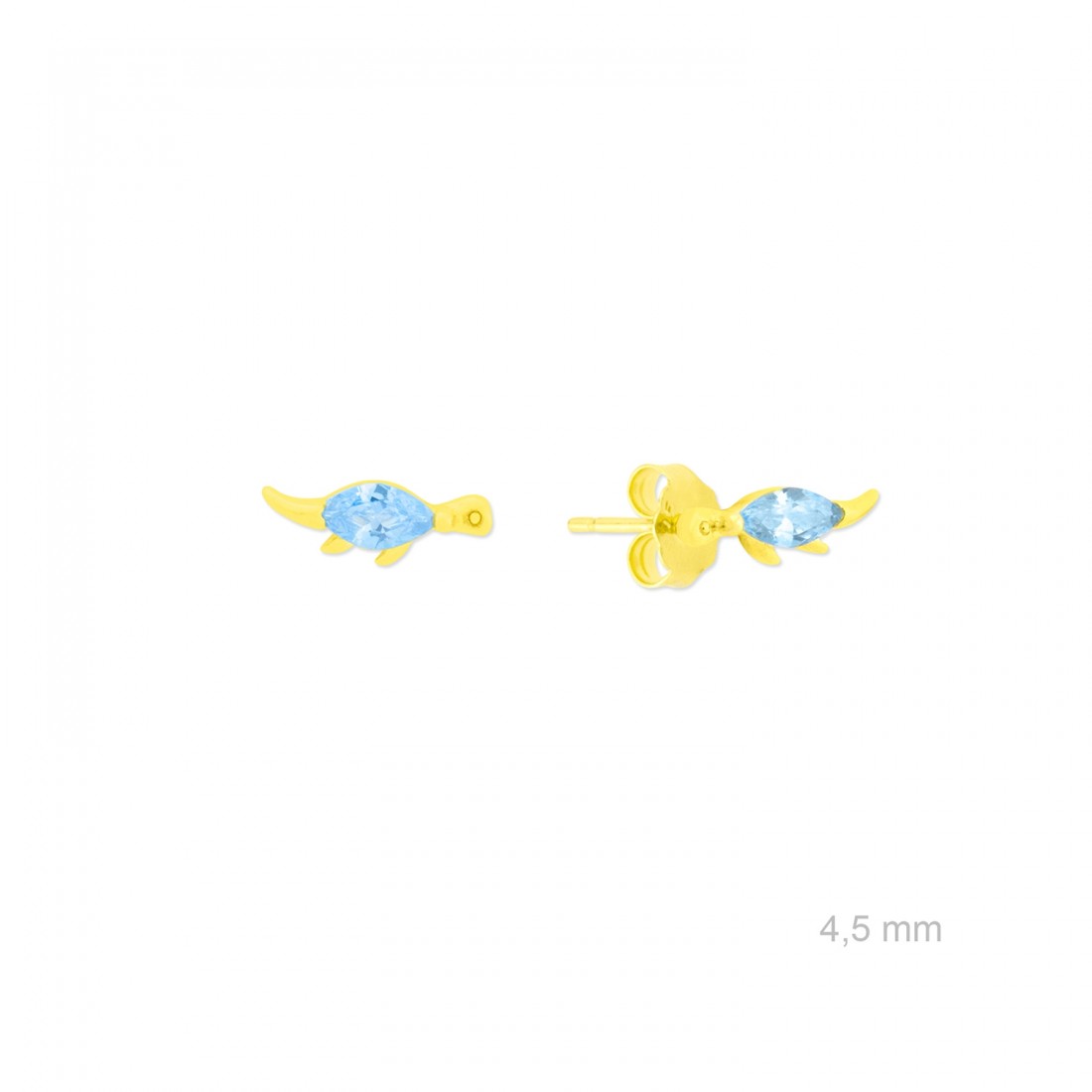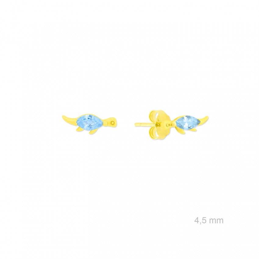 Pendientes de Plata de Ley chapados en oro con forma de dinosaurio de 4,5 mm de alto y circonita color aguamarina.