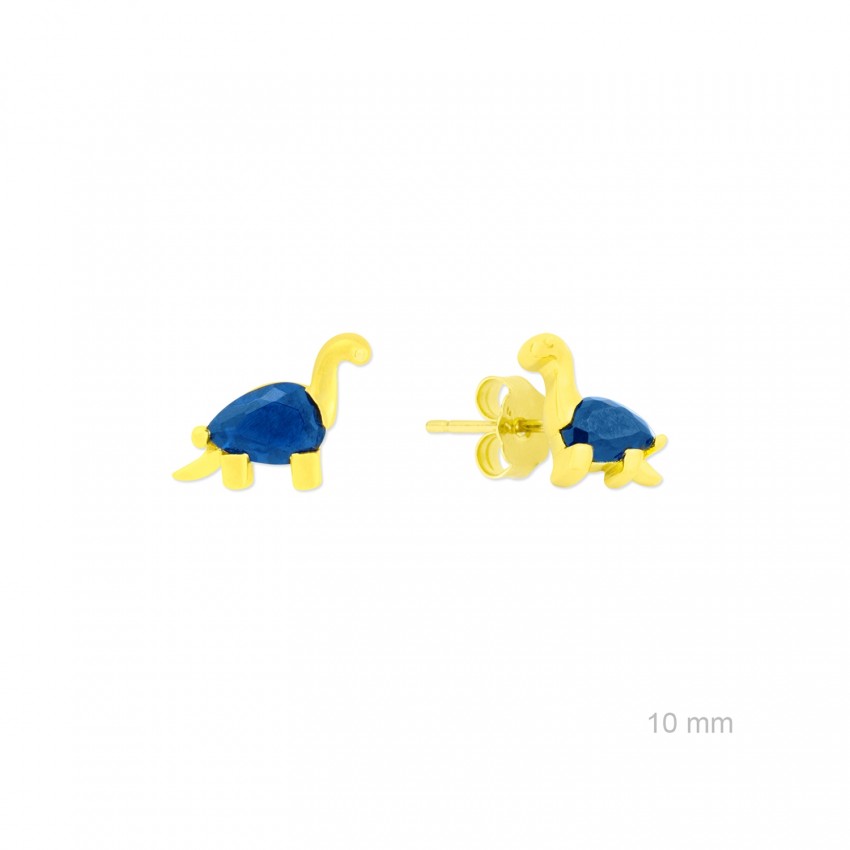 Pendientes de Plata de Ley chapados en oro con forma de dinosaurio de 10 mm de alto y circonita color zafiro.