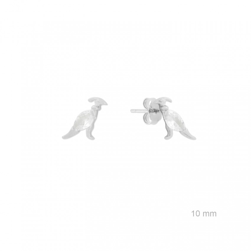 Pendientes de Plata de Ley con forma de dinosaurio de 10 mm de alto y circonita blanca. Talla marquise. Cierre de presión.