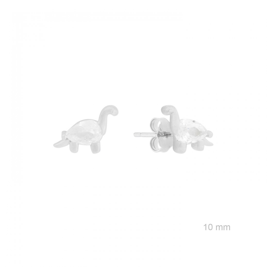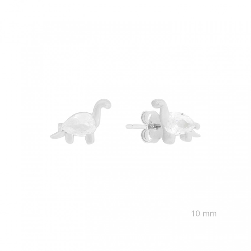 Pendientes de Plata de Ley con forma de dinosaurio de 10 mm de alto y circonita blanca. Talla pera. Cierre de presión.