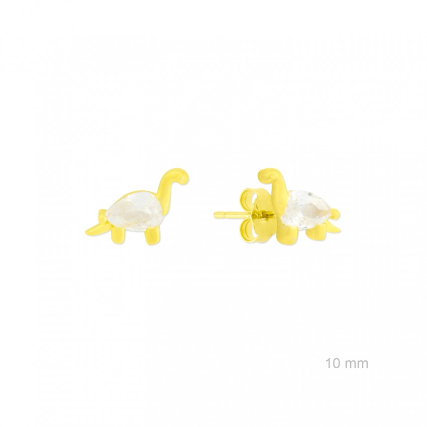 Pendientes de Plata de Ley chapados en oro con forma de dinosaurio de 10 mm de alto y circonita blanca.