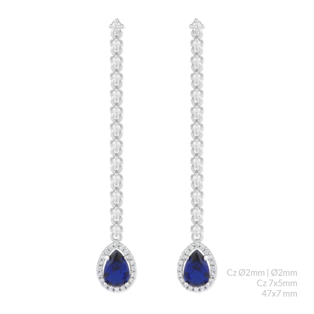 Pendientes de Plata de Ley con circonitas blancas de Ø2 mm y zafiro de 7x5 mm.