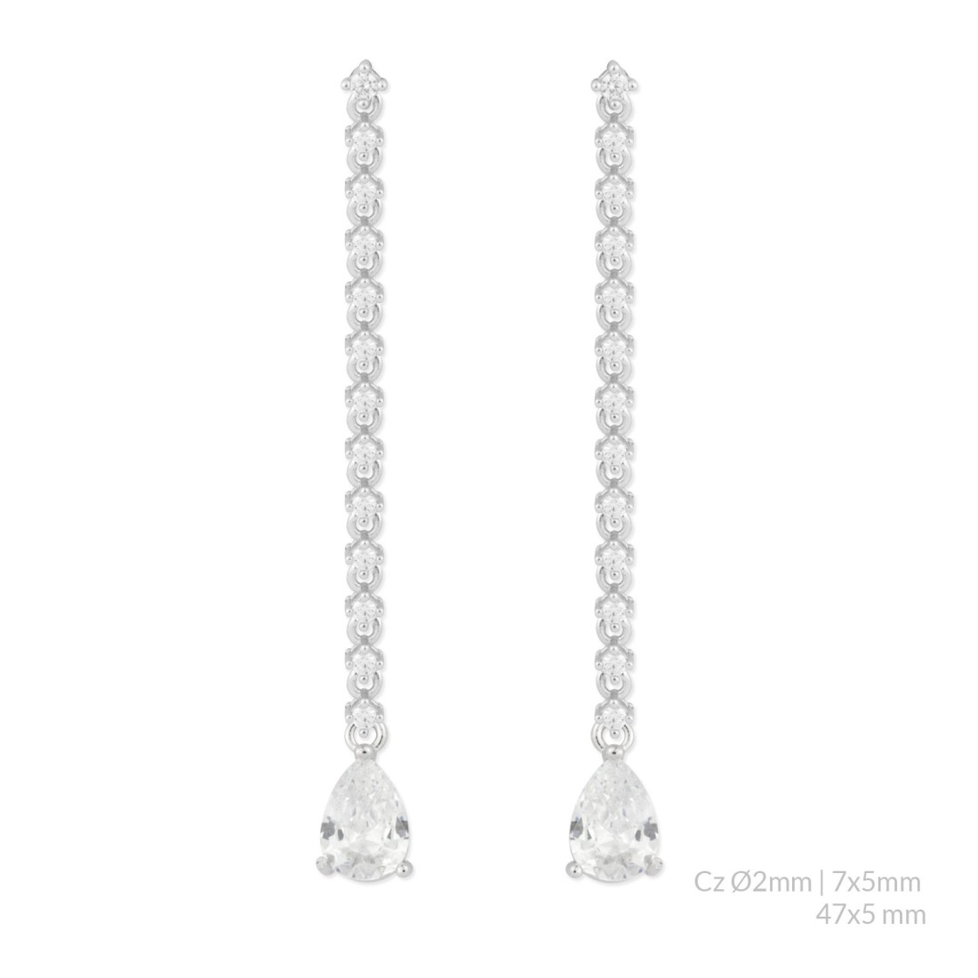Pendientes de Plata de Ley con circonitas blancas de Ø2 mm y de 7x5 mm.
