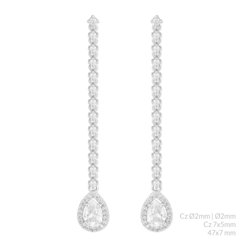Pendientes de Plata de Ley con circonitas blancas de Ø2 mm y de 7x5 mm.