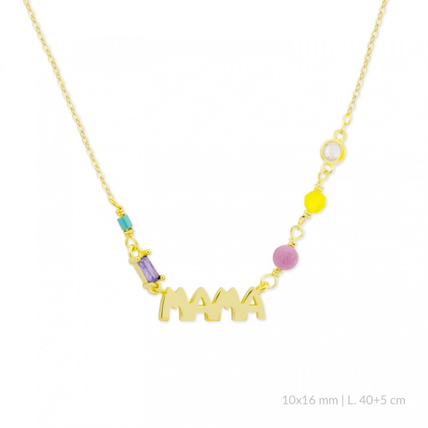 Gargantilla de Plata de Ley chapada en oro con motivo MAMA y circonitas de color con diferentes tallas y engastes.
