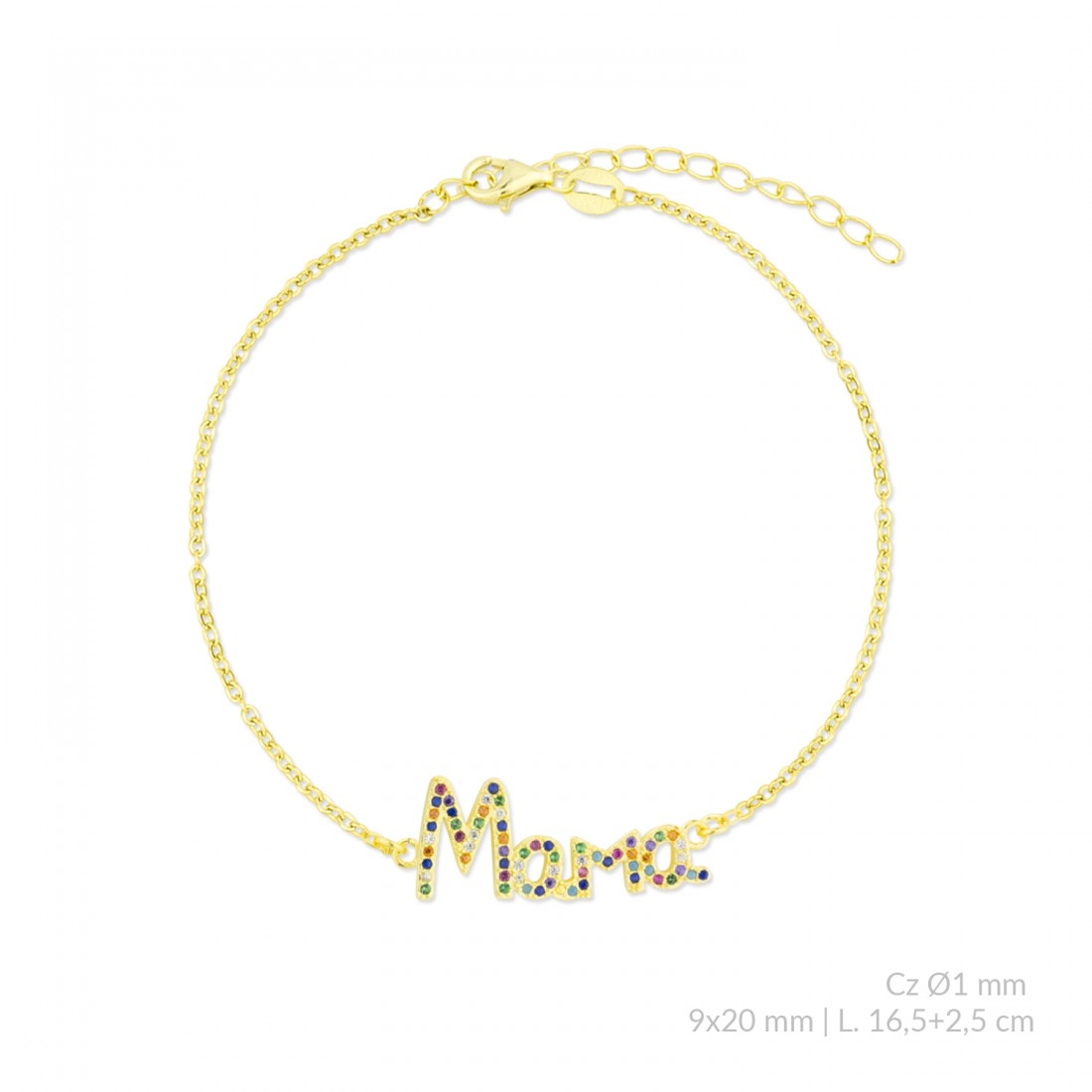 Pulsera de Plata de Ley chapada en oro con motivo MAMA en circonitas de color de Ø1 mm.