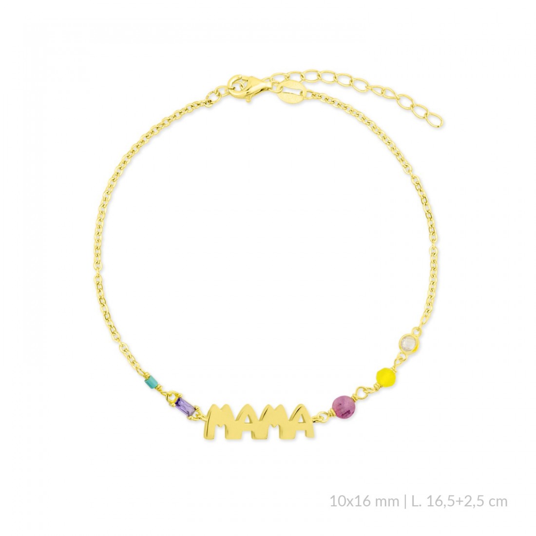 Pulsera de Plata de Ley chapada en oro con motivo MAMA y circonitas de color con diferentes tallas y engastes.