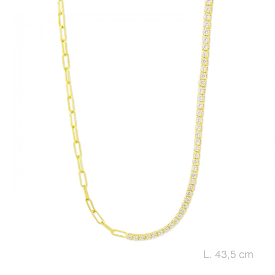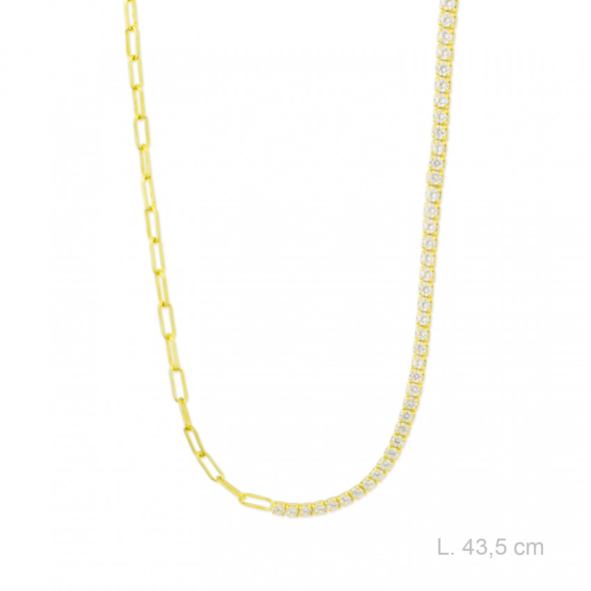 Gargantilla de Plata de Ley chapada en oro con eslabones largos y circonitas blancas.