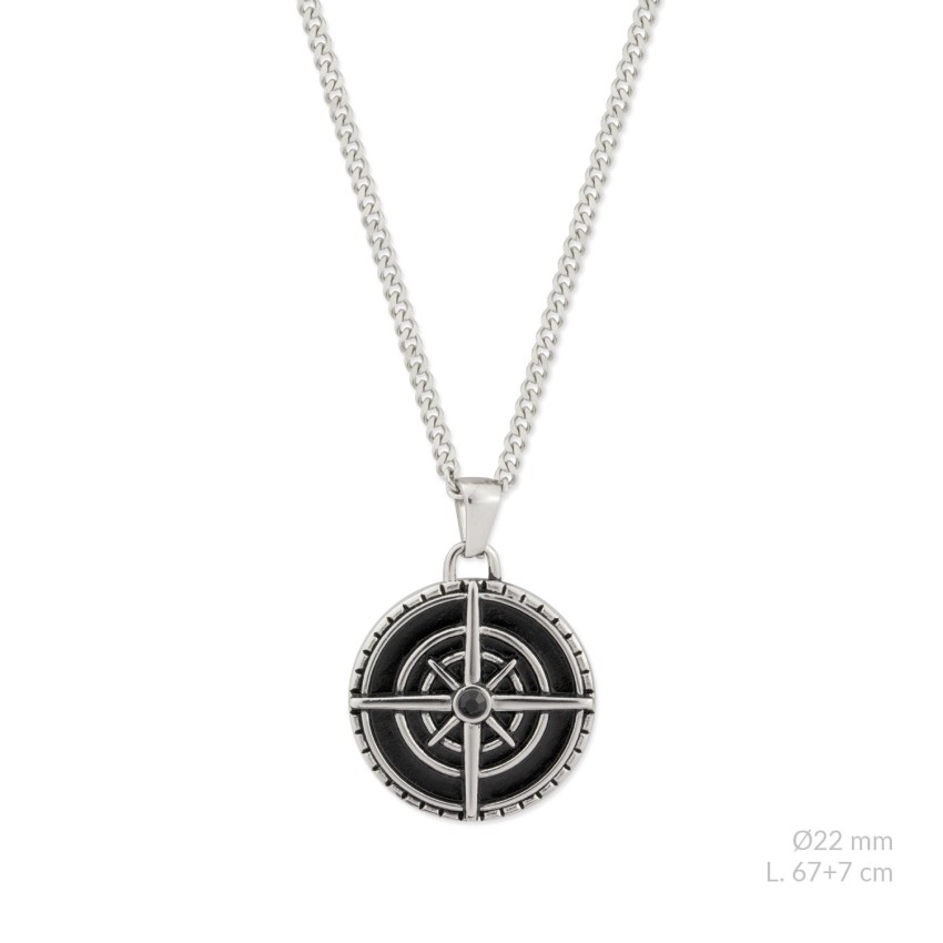 Collar de Acero Inoxidable con brújula de esmalte negro.