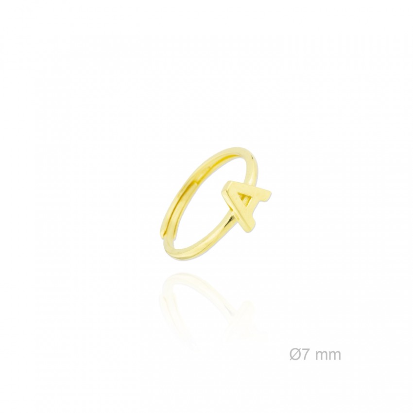 Sortija de Plata de Ley chapada en oro. Letra A. Ajustable a diferentes medidas. Incluye caja.