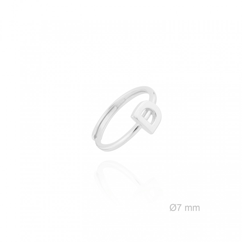 Sortija de Plata de Ley. Letra D. Ajustable a diferentes medidas. Incluye caja.