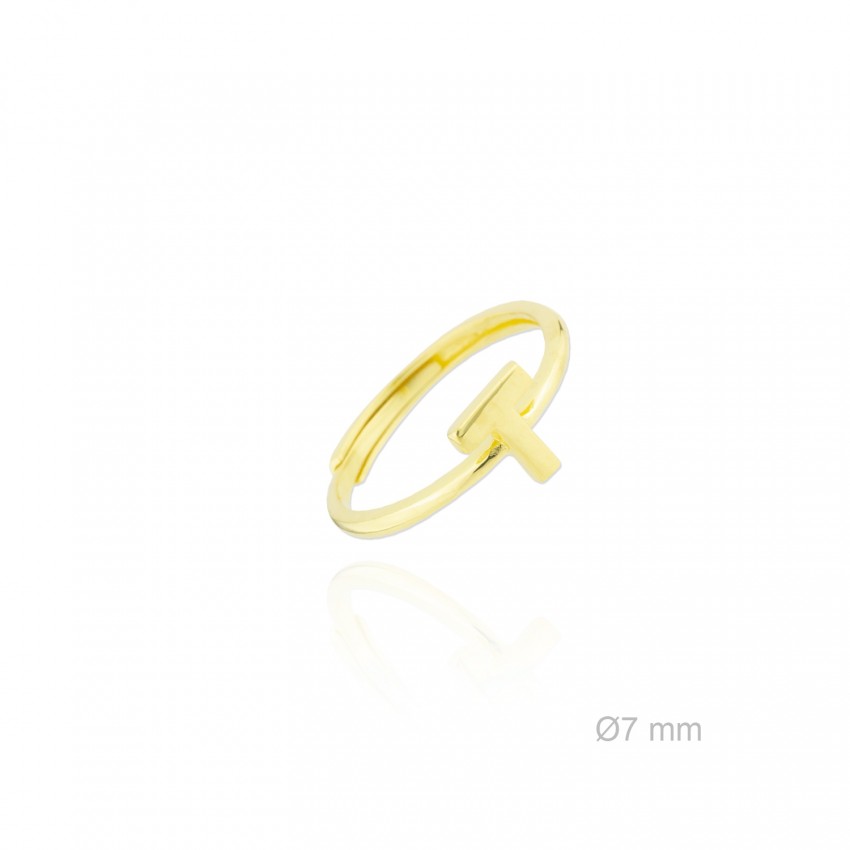 Sortija de Plata de Ley chapada en oro. Letra T. Ajustable a diferentes medidas. Incluye caja.