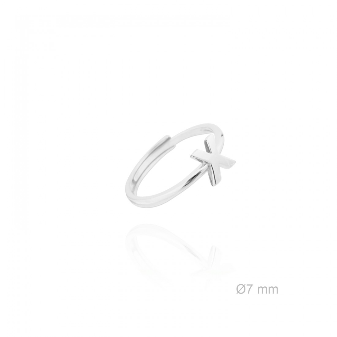 Sortija de Plata de Ley. Letra X. Ajustable a diferentes medidas. Incluye caja.