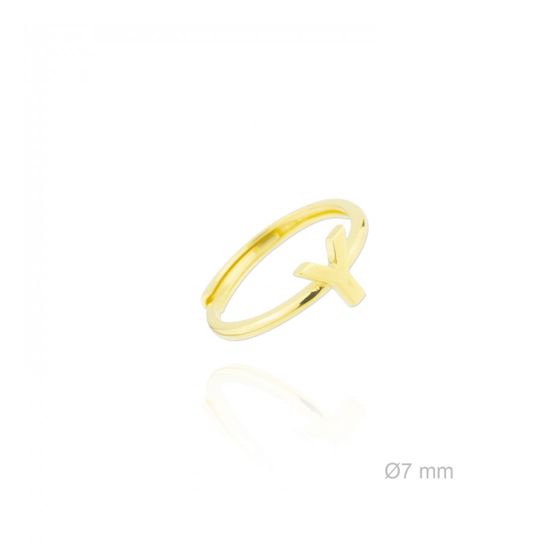 Sortija de Plata de Ley chapada en oro. Letra Y. Ajustable a diferentes medidas. Incluye caja.
