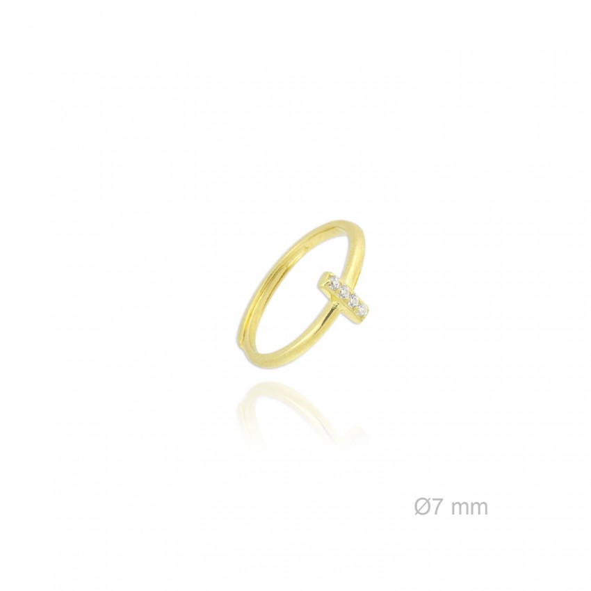Sortija de Plata de Ley chapada en oro con circonitas blancas. Letra I. Ajustable a diferentes medidas. Incluye caja.