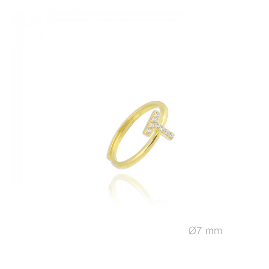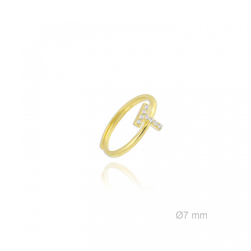 Sortija de Plata de Ley chapada en oro con circonitas blancas. Letra S. Ajustable a diferentes medidas. Incluye caja.