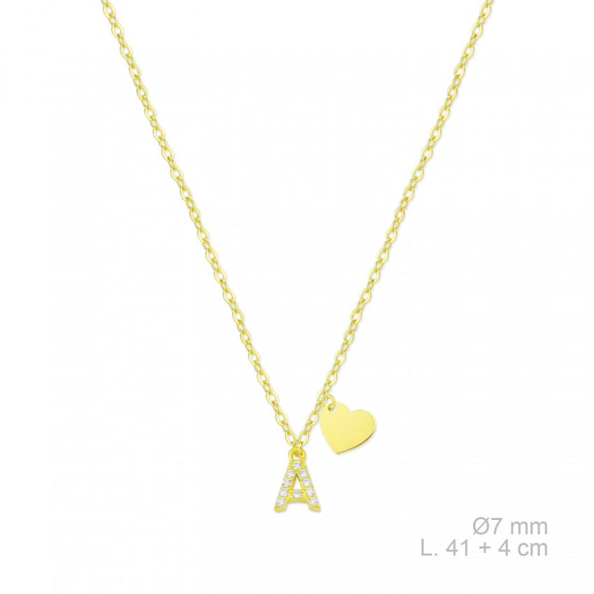 Gargantilla de Plata de Ley chapada en oro con circonitas blancas y un corazón.