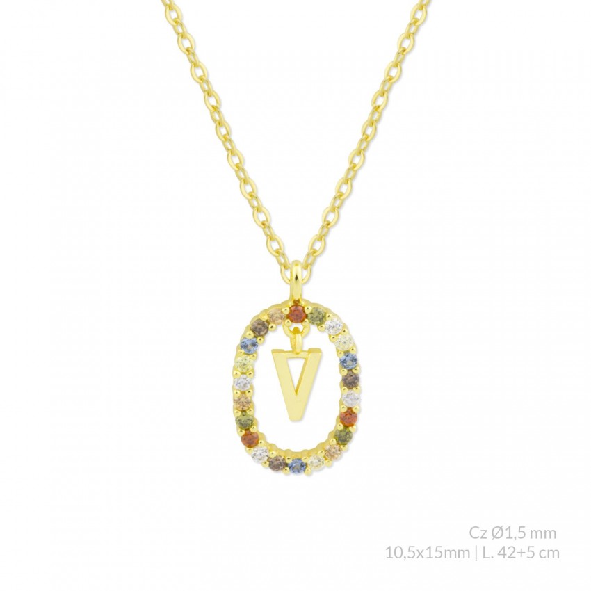 Gargantilla de Plata de Ley chapda en oro con circonitas de color de Ø1.5 mm.