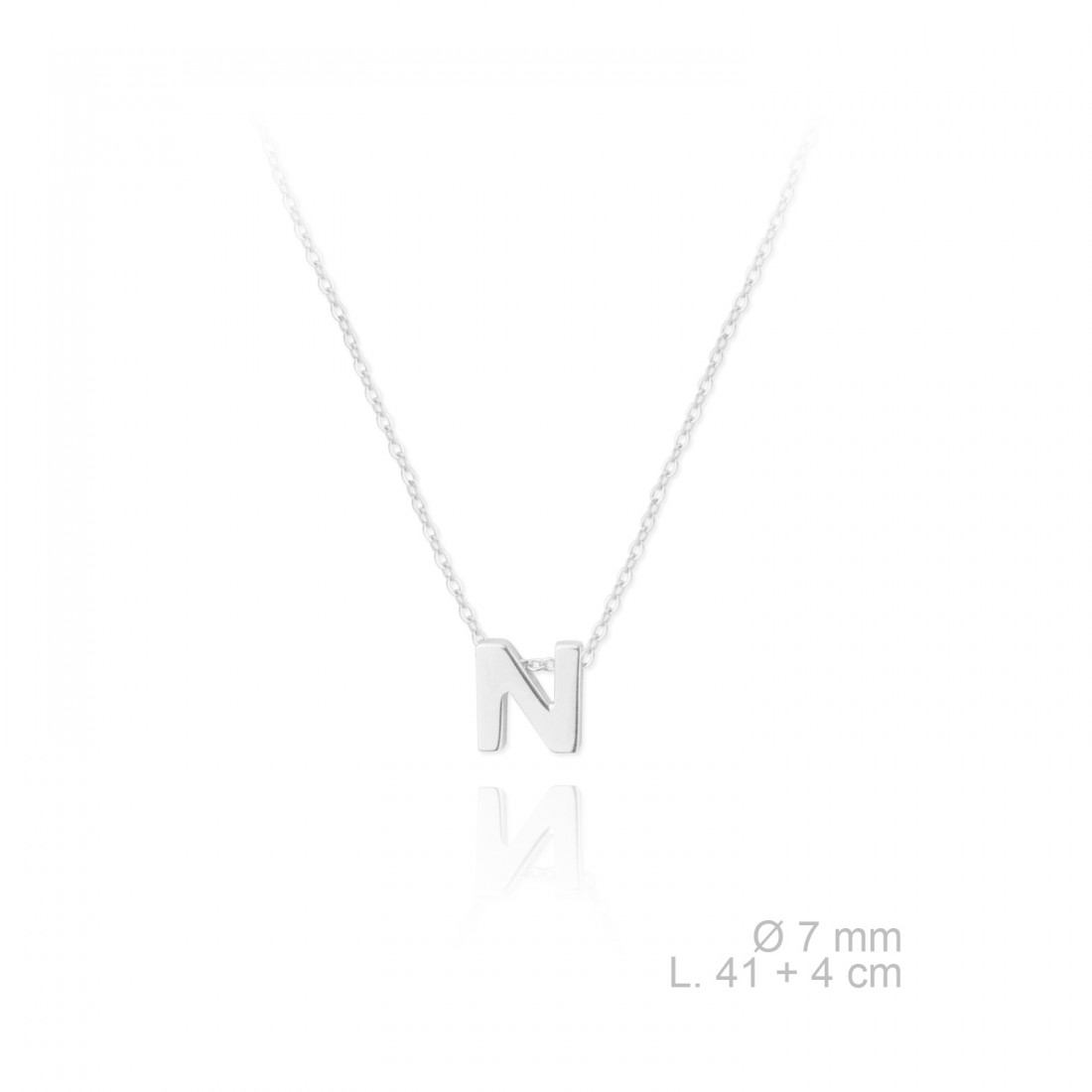 Gargantilla de Plata de Ley. Letra N. Tamaño: 7 mm. Longitud de 41 cm más cadena de alargamiento de 4 cm. Incluye caja.