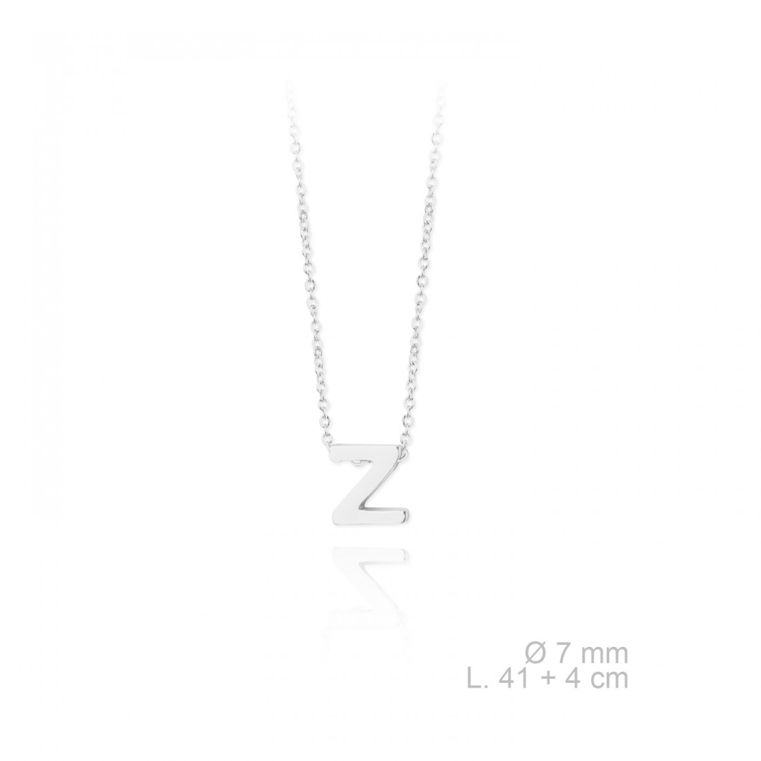 Gargantilla de Plata de Ley. Letra Z. Tamaño: 7 mm. Longitud de 41 cm más cadena de alargamiento de 4 cm. Incluye caja.