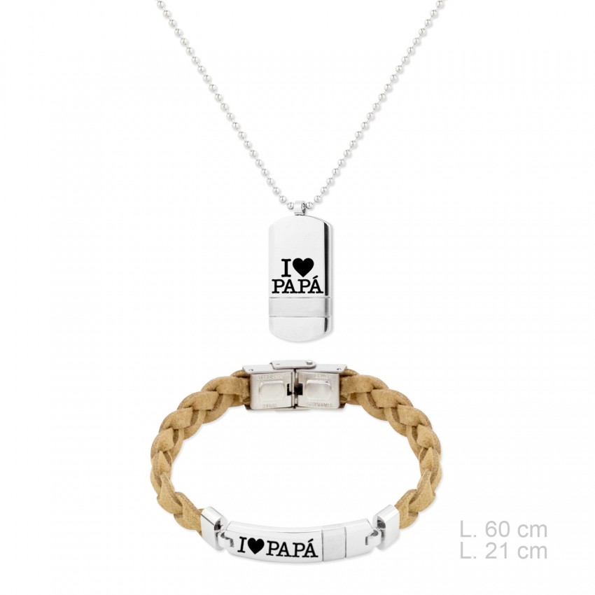 Medida del motivo de la pulsera: 12 x 40 mm. Medida del motivo de la gargantilla: 40 x 21 mm.