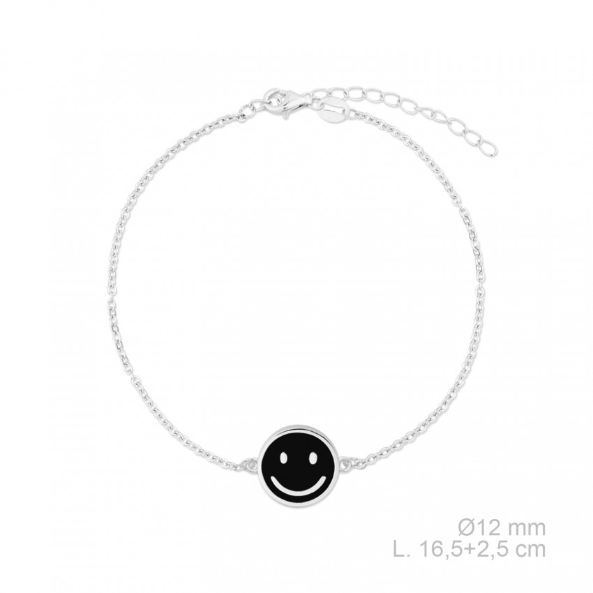 Pulsera de Plata de Ley con motivo smiley o carita sonriente de 12 mm de diámetro y esmalte negro.