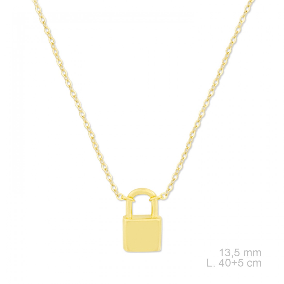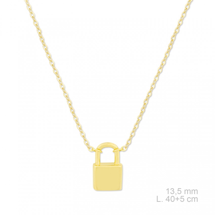 Gargantilla de Plata de Ley chapada en oro de la que cuelga un pequeño candado.