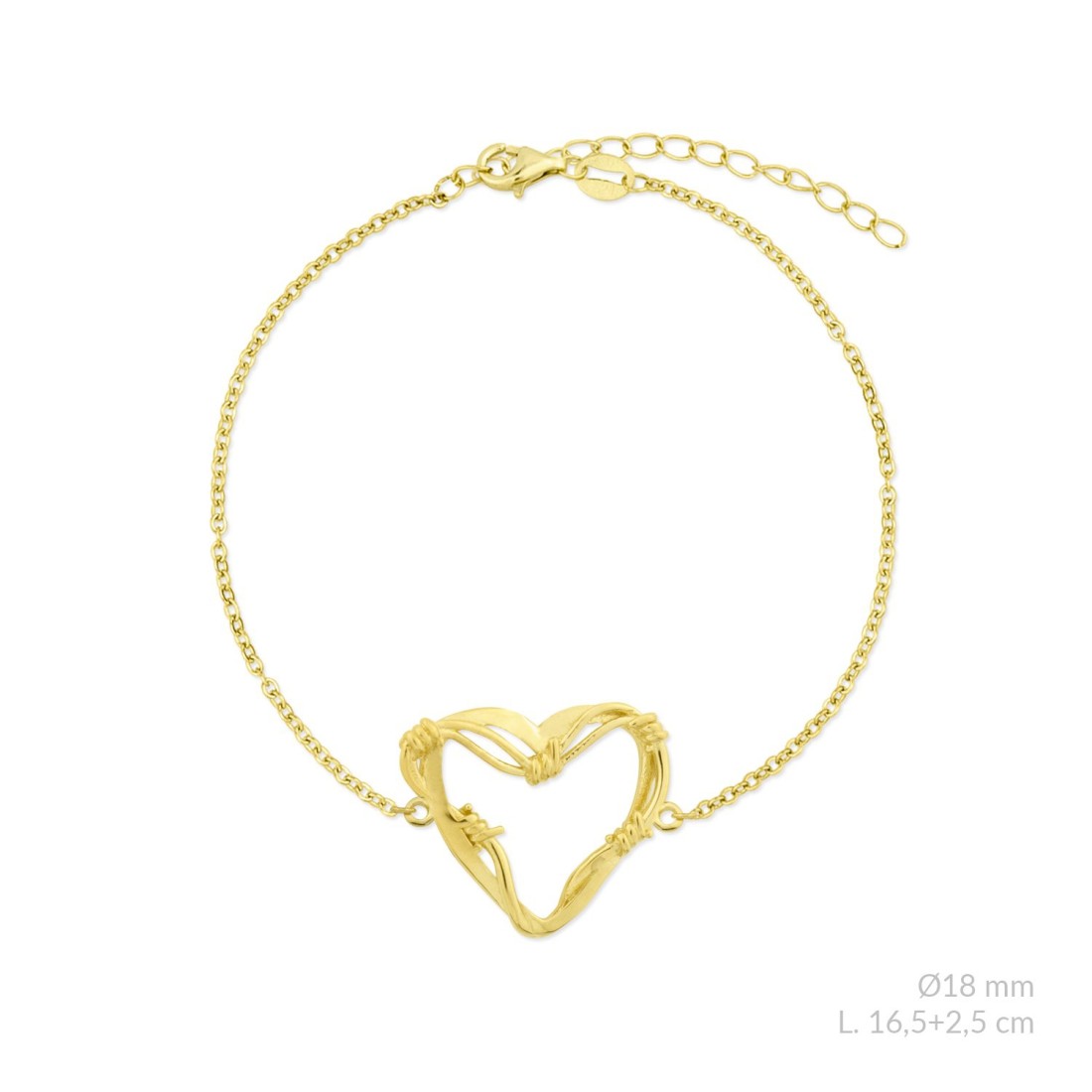 Pulsera de Plata de Ley chapada en oro con un corazón y alambre de espino.
