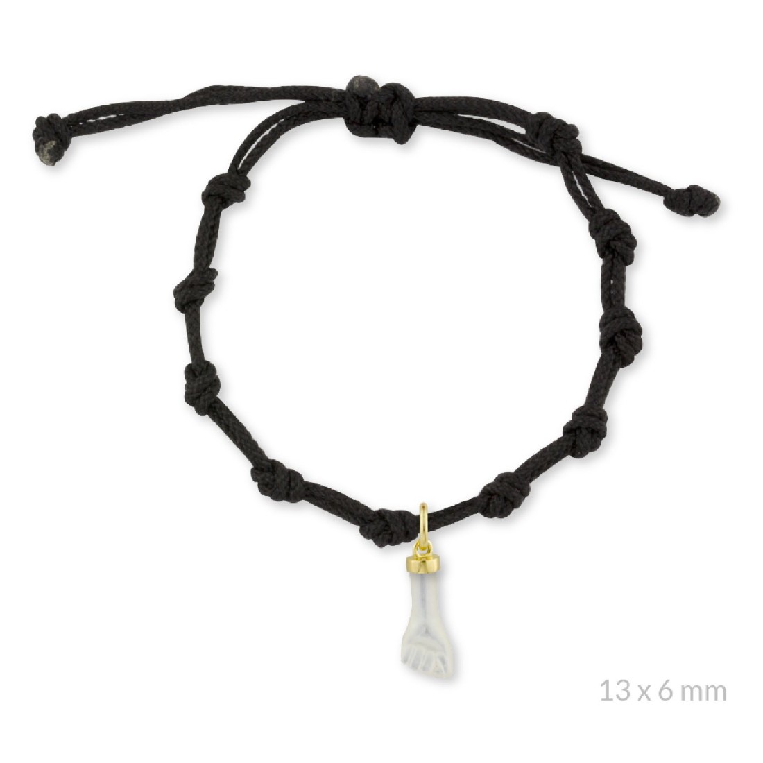 Pulsera de hilo negro con Higa de madreperla de Plata de Ley chapada en oro | 10 nudos.