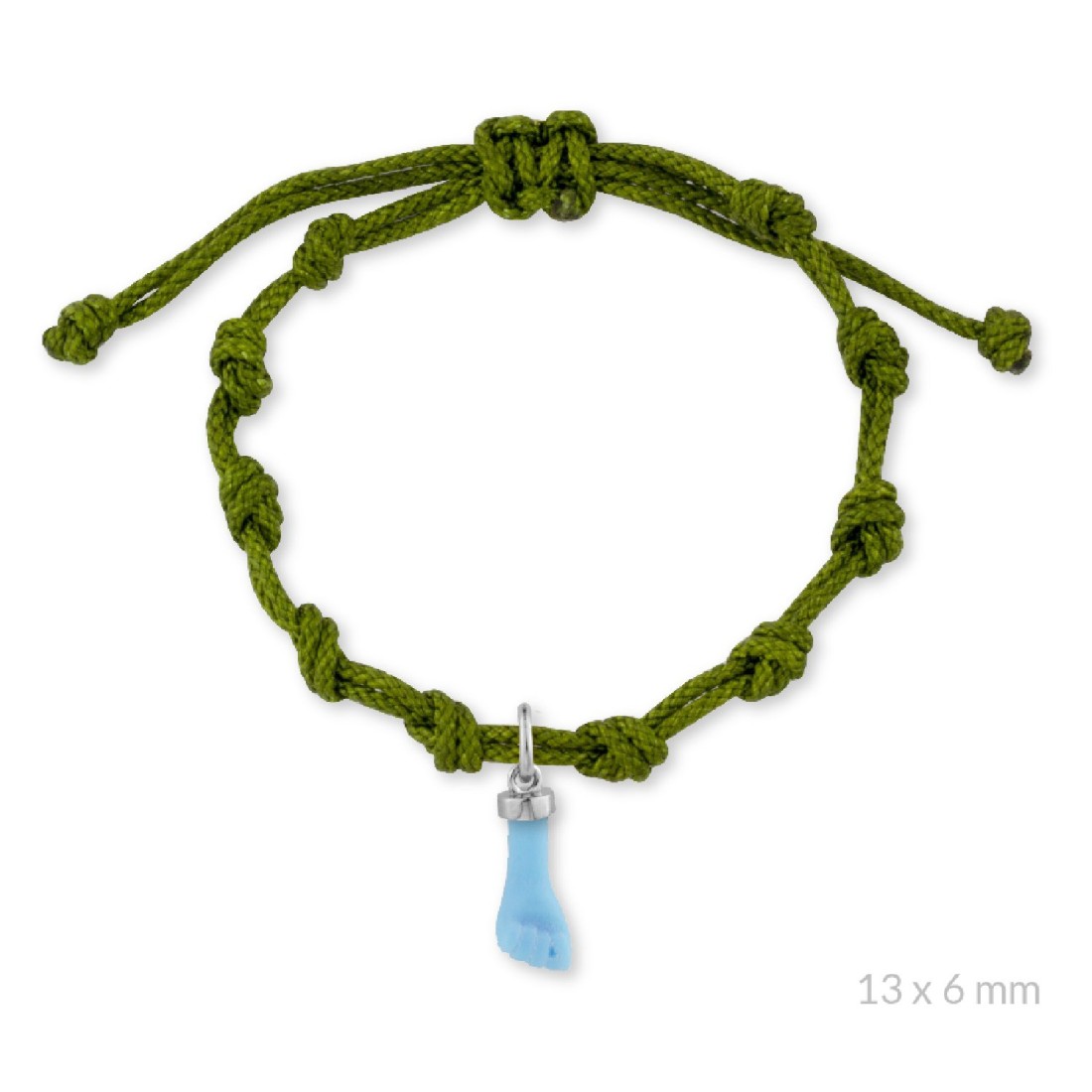 Pulsera de hilo verde oliva con Higa de turquesa de Plata de Ley | 10 nudos.