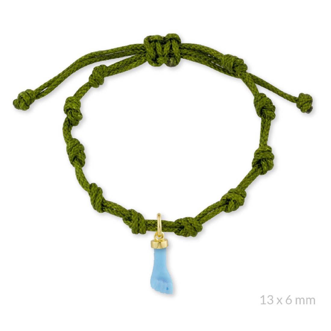 Pulsera de hilo verde oliva con Higa de turquesa de Plata de Ley chapada en oro | 10 nudos.