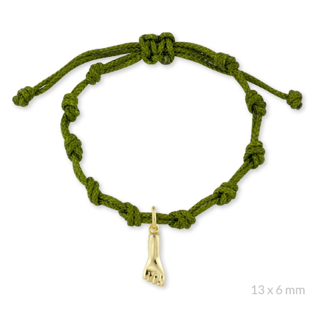 Pulsera de hilo verde oliva con Higa de Plata de Ley chapada en oro | 10 nudos.