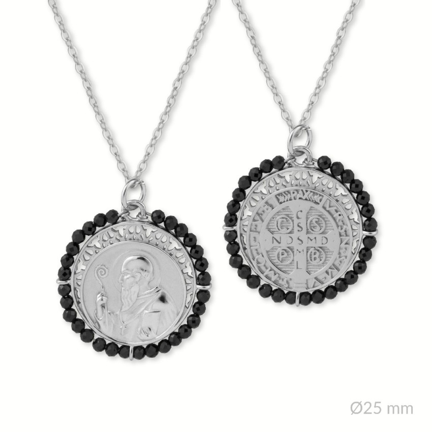 Medalla de Plata de Ley de San Benito con rocalla de ónix.