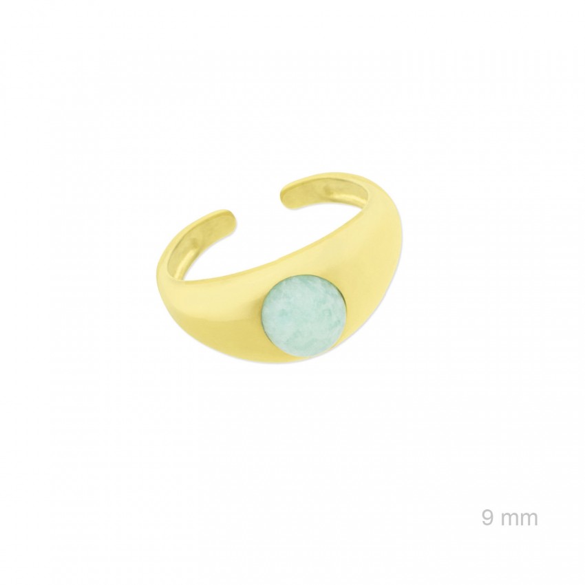 Sortija de Plata de Ley chapada en oro de estilo étnico con calcedonia verde.