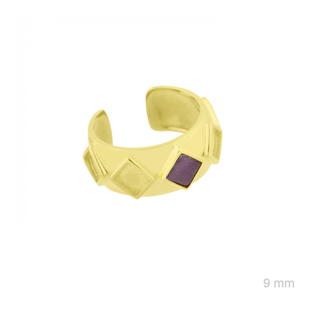 Sortija de Plata de Ley chapada en oro de estilo étnico con amatista.