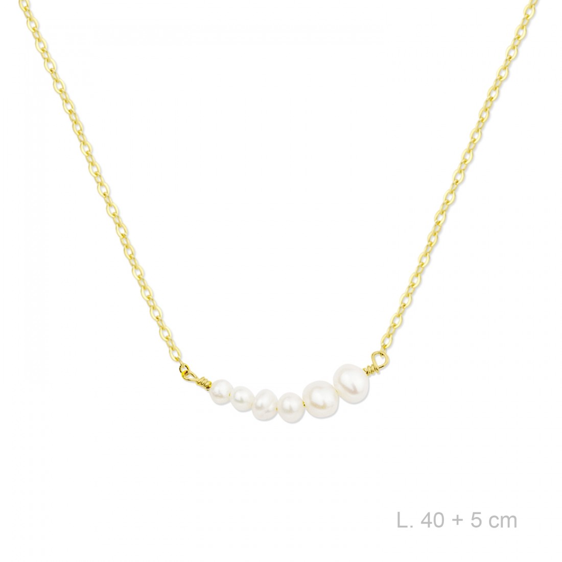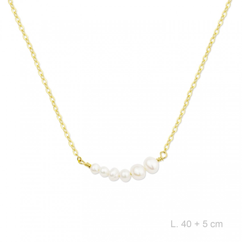 Gargantilla de Plata de Ley chapada en oro con motivo de perlas cultivadas de diferentes tamaños.
