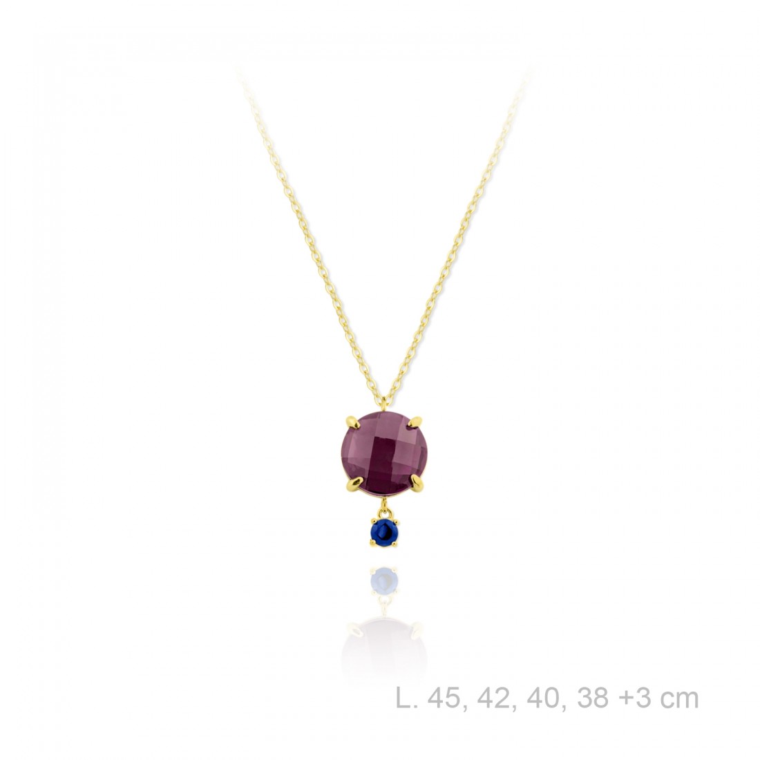 Gargantilla de Plata de Ley chapada en oro con amatista y circonita color zafiro.
