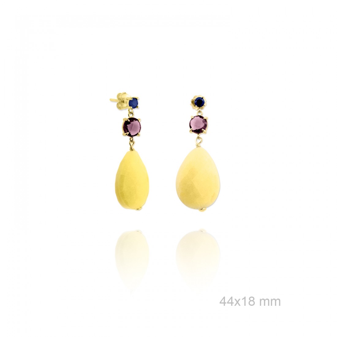 Pendientes de Plata de Ley chapados en oro con amatista, citrino y circonita color zafiro.
