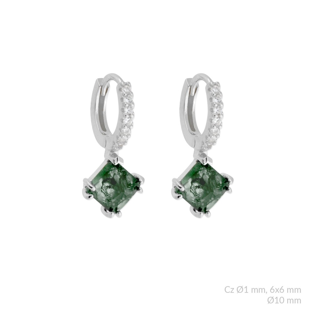 Pendientes de Plata de Ley con ágata verde y circonita blanca.