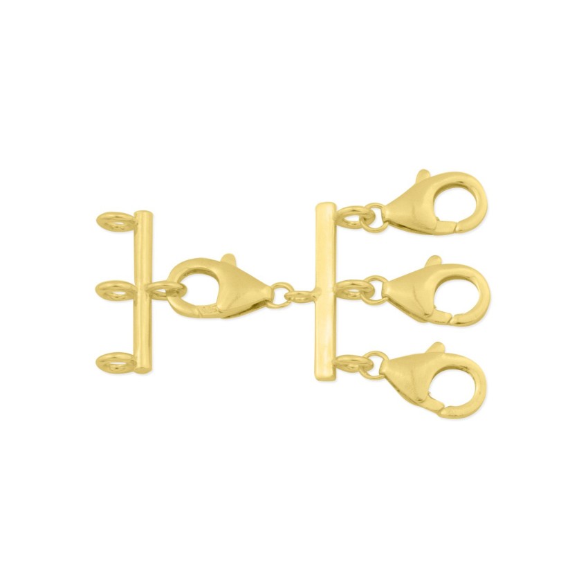 Cierre de Plata de Ley chapado en oro para tres gargantillas. Ayuda a que las cadenas no se enreden con tanta facilidad.