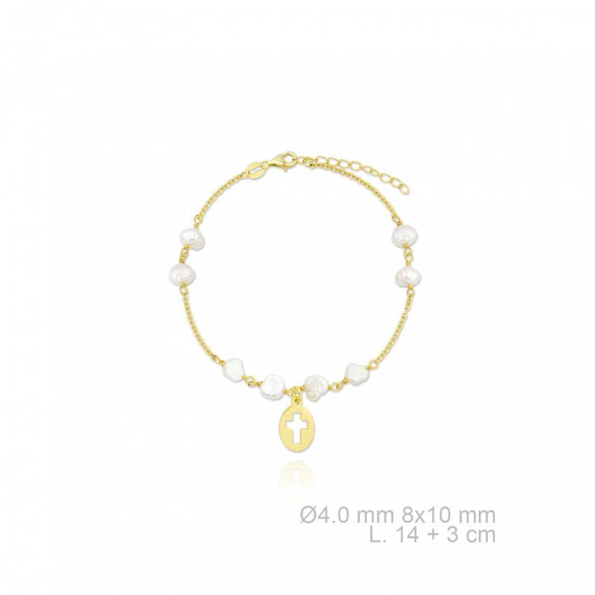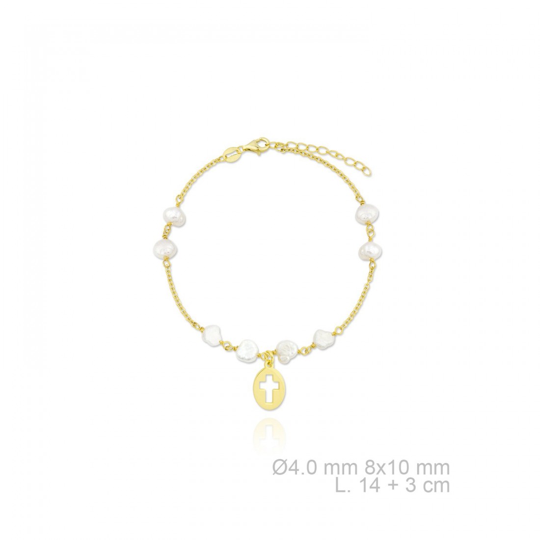 Pulsera de Plata de Ley en dorado y perla cultivada