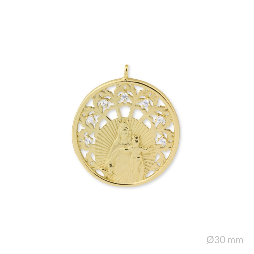 Medalla de Plata de Ley chapada en oro de laVirgen del Carmen con circonitas.